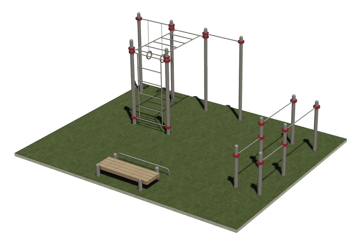 Комплектация: Спортивная площадка включает тренажеры: РК036, СК0017 и Б003.
