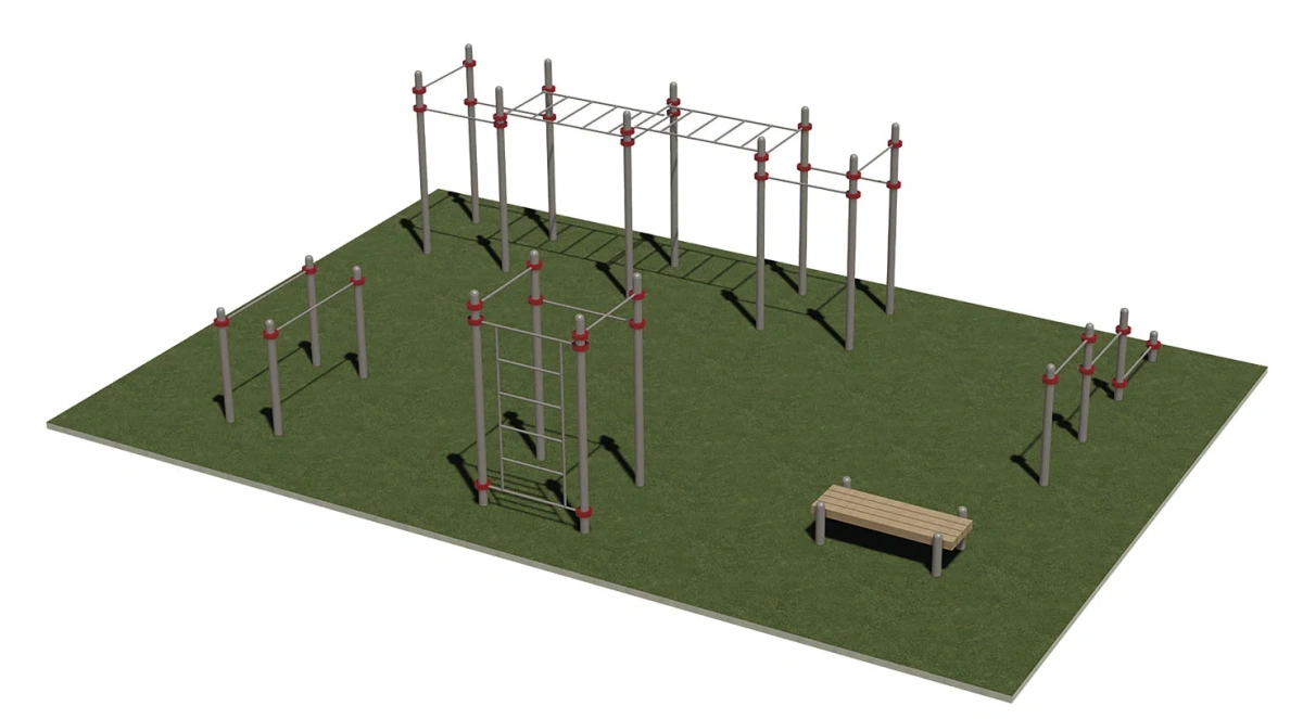 Спортивная площадка включает тренажеры: Р002, Т020, Т005, Б001 и СК001.