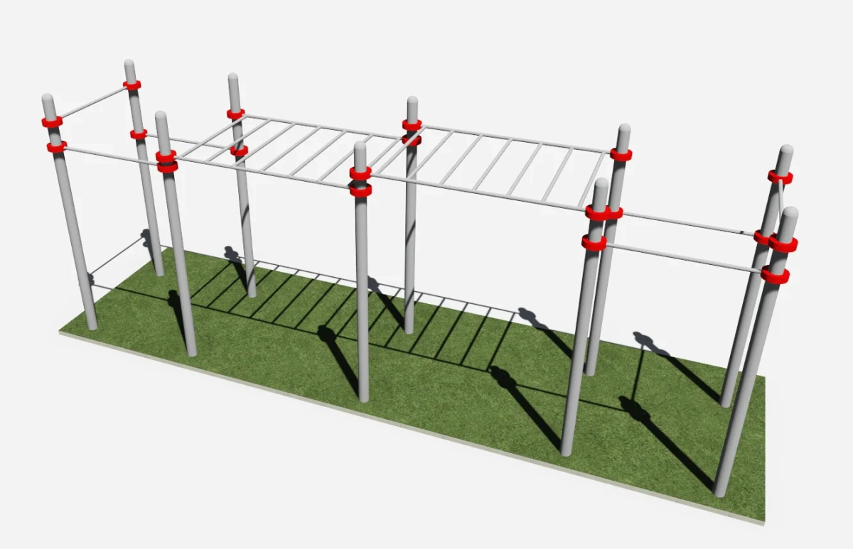 Десять опорных вертикально установленных столбов, высотой 2600 мм являются опорой для данного комплекса.