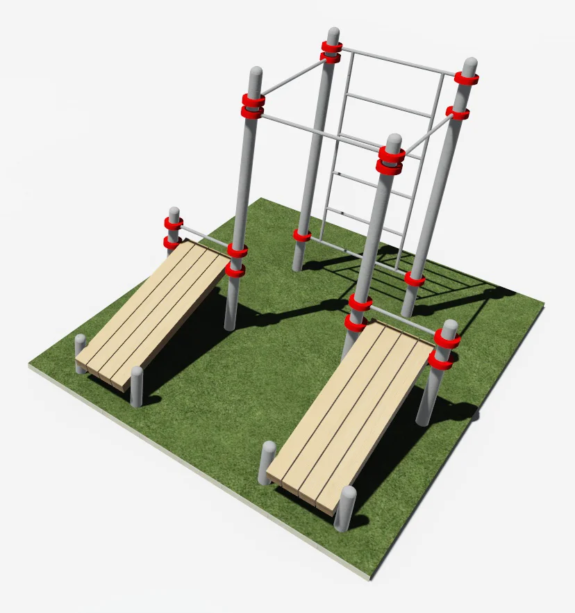 Две скамьи, шведская стенка и три турника