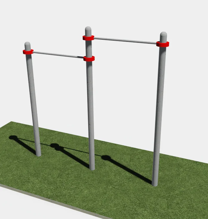 Турник двойной разноуровневый предназначен для подтягиваний. Подтягивание помогает значительно развить мышцы спины. Кроме того, подтягиваясь человек развивает и множество других мышц, косвенно прорабатывая всю верхнюю половину тела. Высоту перекладин можно регулировать.