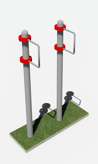 К 2-м вертикальным, параллельно расположенным столбам (высота 2000 мм) крепятся рукоятки: шириной 300 мм, на высоте от 1600 мм до 1900мм от поверхности основания, расстояние между ними 700 мм.